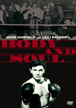 脚本:エイブラハム・ポロンスキー 出演:ジョン・ガーフィールド、リリ・パルマー ほか 「ハスラー」「オール・ザ・キングスメン」等社会の裏側に光をあてた骨太な人間ドラマでいぶし銀のような魅力を発揮した名匠ロバート・ロッセン監督初期の名作。NYのロシア系ユダヤ人家庭に生まれた彼だからこそ描けた‘40年代ブルックリンのリアルな雰囲気はフィルム・ノワールの色彩を帯びて秀逸。アマチュア・ボクサーがチャンピオンになるまでの挫折と栄光が、ジャズのスタンダードナンバー“ボディ・アンド・ソウル”の調べにのって語られメロドラマとしても一級品の出来栄え。赤狩りでハリウッドを追われたエイブラハム・ポロンスキーの脚本、ロバート・アルドリッチが助監督というボクシング映画ファンならずとも胸躍る1本。